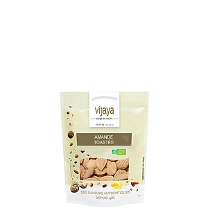 L’amande est un fruit à coque, recouvert d’une enveloppe verte et veloutée au toucher (le brou), qui sèche et éclate à maturité, laissant apparaître une noix. Quand les amandes sont décortiquées et séchées, leur peau est brune. VIJAYA vous propose ses amandes décortiquées en version toastée maison.
