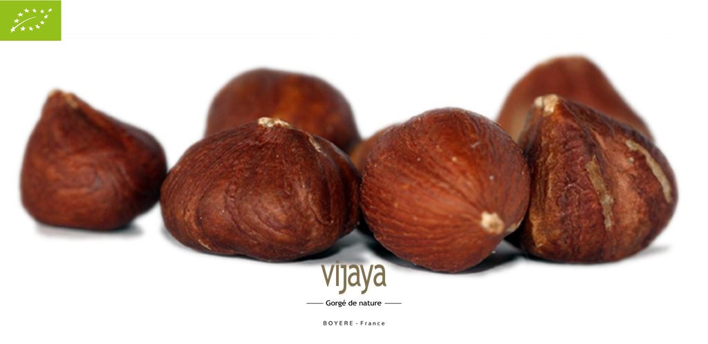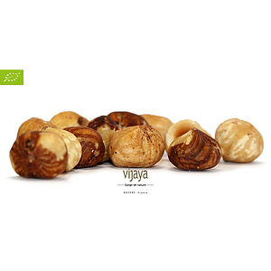 VIJAYA vous propose ses noisettes sous différentes versions : entière décortiquée nature ou bien toastée, en grains ou en poudre. Les Noisettes Entières VIJAYA proviennent directement d'Italie, elles sont issues d'une variété ronde, généreuse, ferme et croquante.